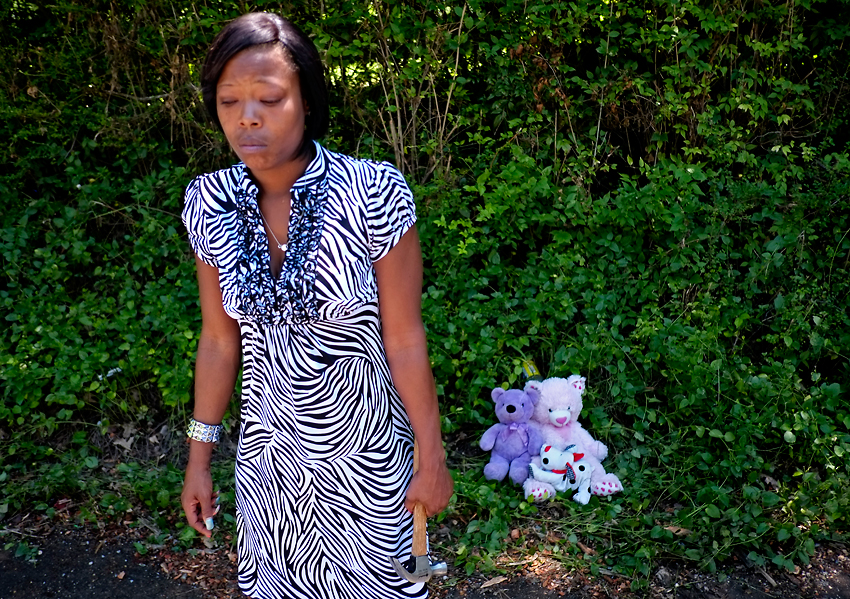 So Shonda Mason picked through the weeds that climbed over the jagged asphalt. She searched the leafy overgrowth swallowing a fence. She ran fingers over dirt to find the cave of a bullet hole.