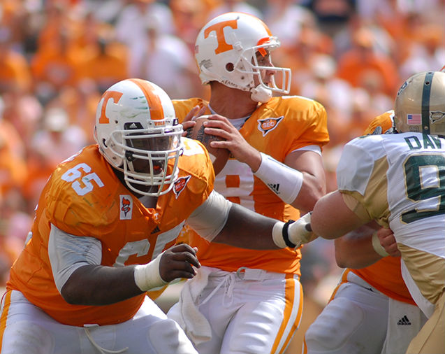 He lettered for four years at the University of Tennessee, where he played tackle and guard and set a weight-room record with a 645-pound bench press. He was part of an offensive line at the college that, in 2008, allowed the fewest sacks in the nation.