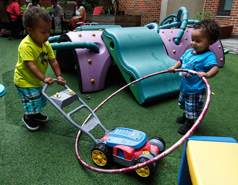 Bryson, right, plays with his older brother Tré in a playground courtyard during a visit to Erlanger about 8 months before Tré died after complications from a bone marrow transplant in Cincinnati to treat his IPEX. Jasmine is now faced with the decision of whether or not to put Bryson through the same procedure that took his brother's life.