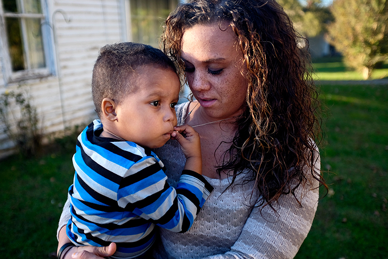 Jasmine watches Bryson as he climbs around the living room while watching television at their home in Sweetwater, Tenn., in October of 2014. Bryson's health is always in question, and could deteriorate rapidly even with treatment.