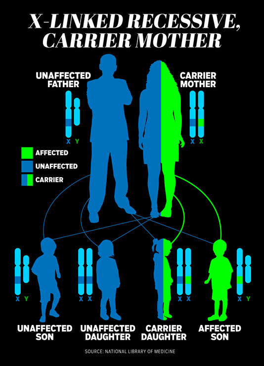 Drawing out the family tree, Powell found that the sick boys were all linked by blood through women in the family — proof that the deadly inheritance, whatever it was, passed from the mothers’ X-chromosomes to their sons.