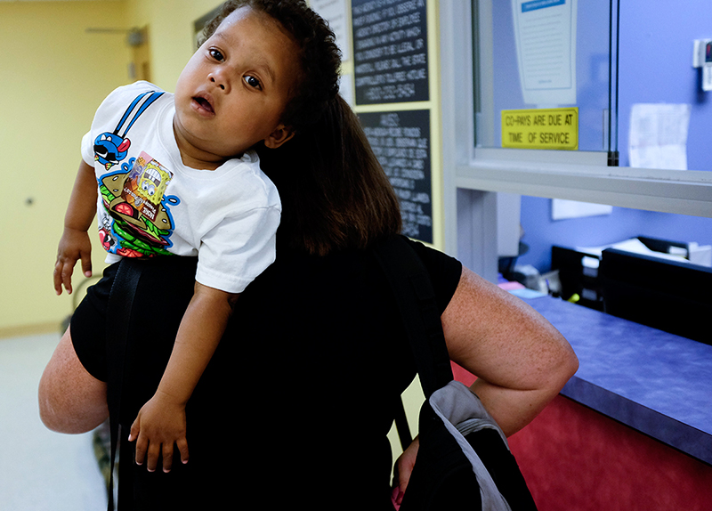 Bryson's grandmother Melissa carries him from appointment to appointment during a regular visit to Erlanger, where he receives scheduled check-ups and injections to monitor and maintain his health. The family makes monthly visits for appointments to Chattanooga, where the hospital is located, from Sweetwater, which is about an hour away.